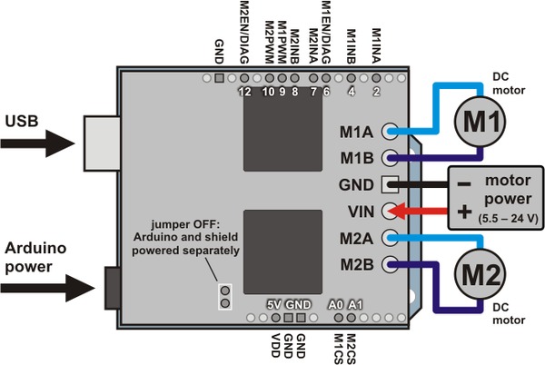 The SparkFun board uses an I2C interface to communicate with the Arduino. This is a bidirectional serial interface, using just two data wires, and power.